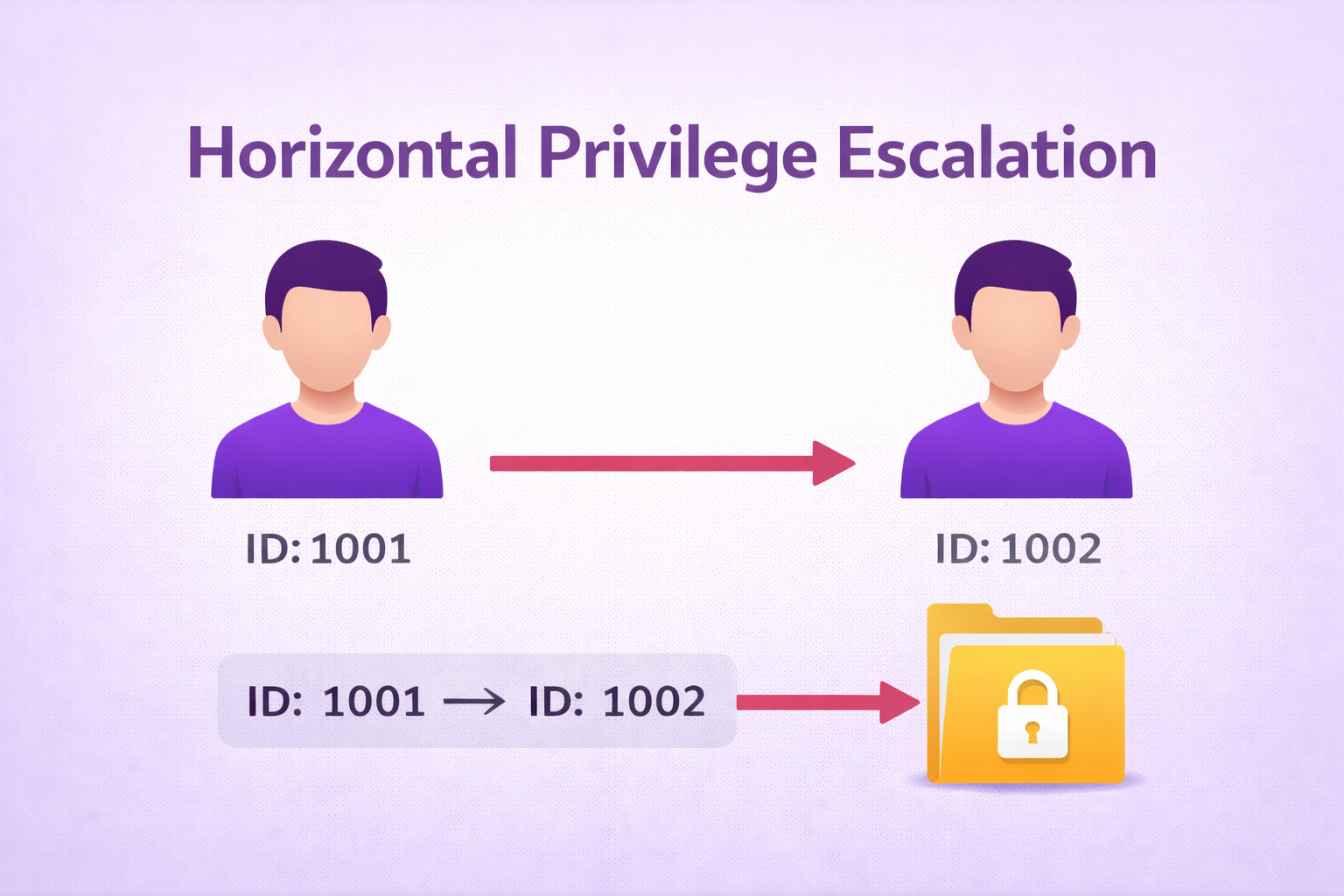 Horizontal Privilege Escalation is a web security vulnerability where a user at one privilege level accesses or modifies resources belonging to another user at the same privilege level. Unlike vertical escalation (user → admin), horizontal escalation moves across users — User A reading or modifying User B’s data.